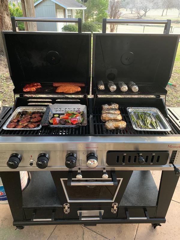 The memphis pro 304 outdoor wood pellet grill combines the very best parts of a kitchen oven a real wood fire a bbq gas grill and a smoker.
